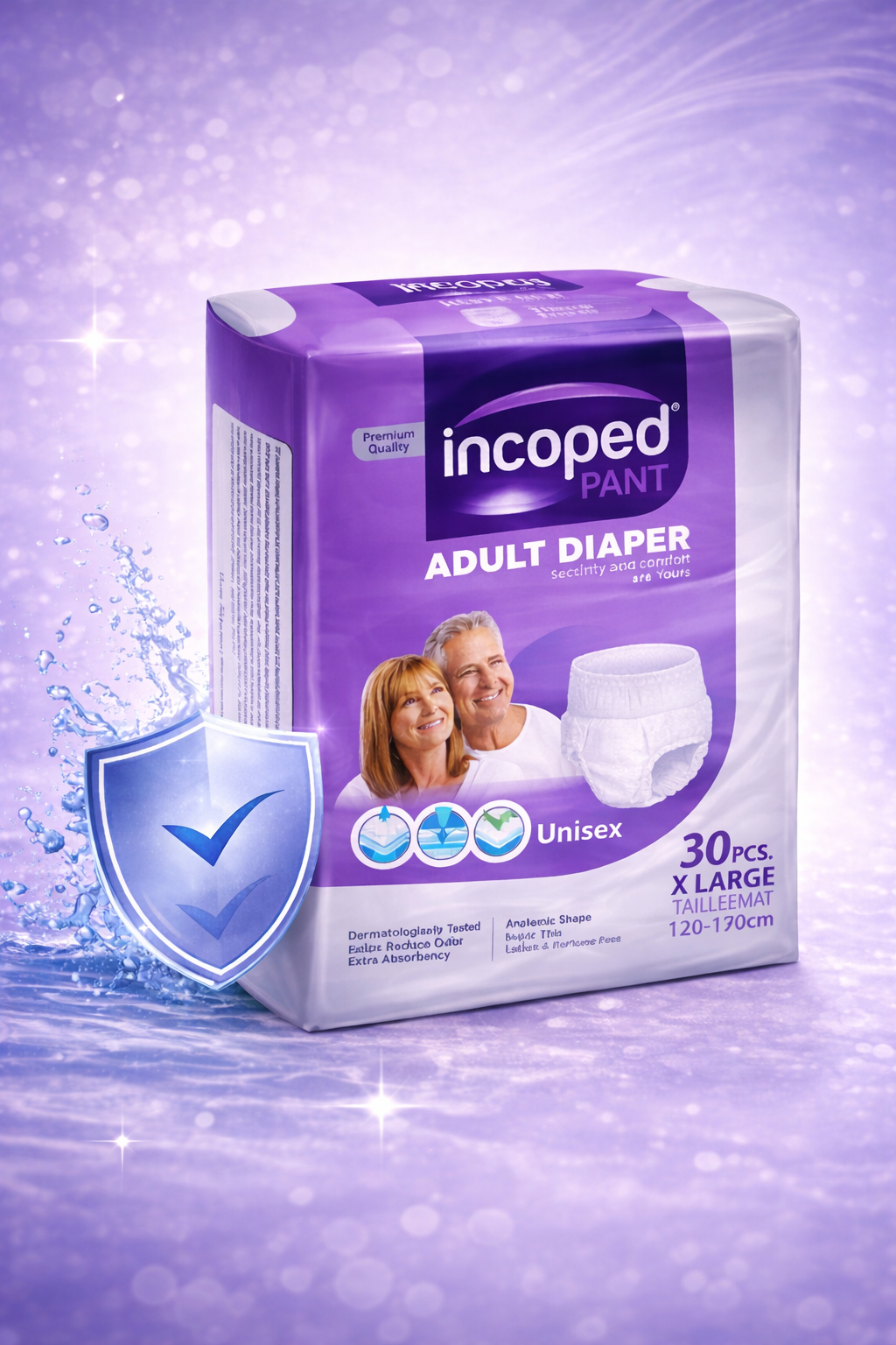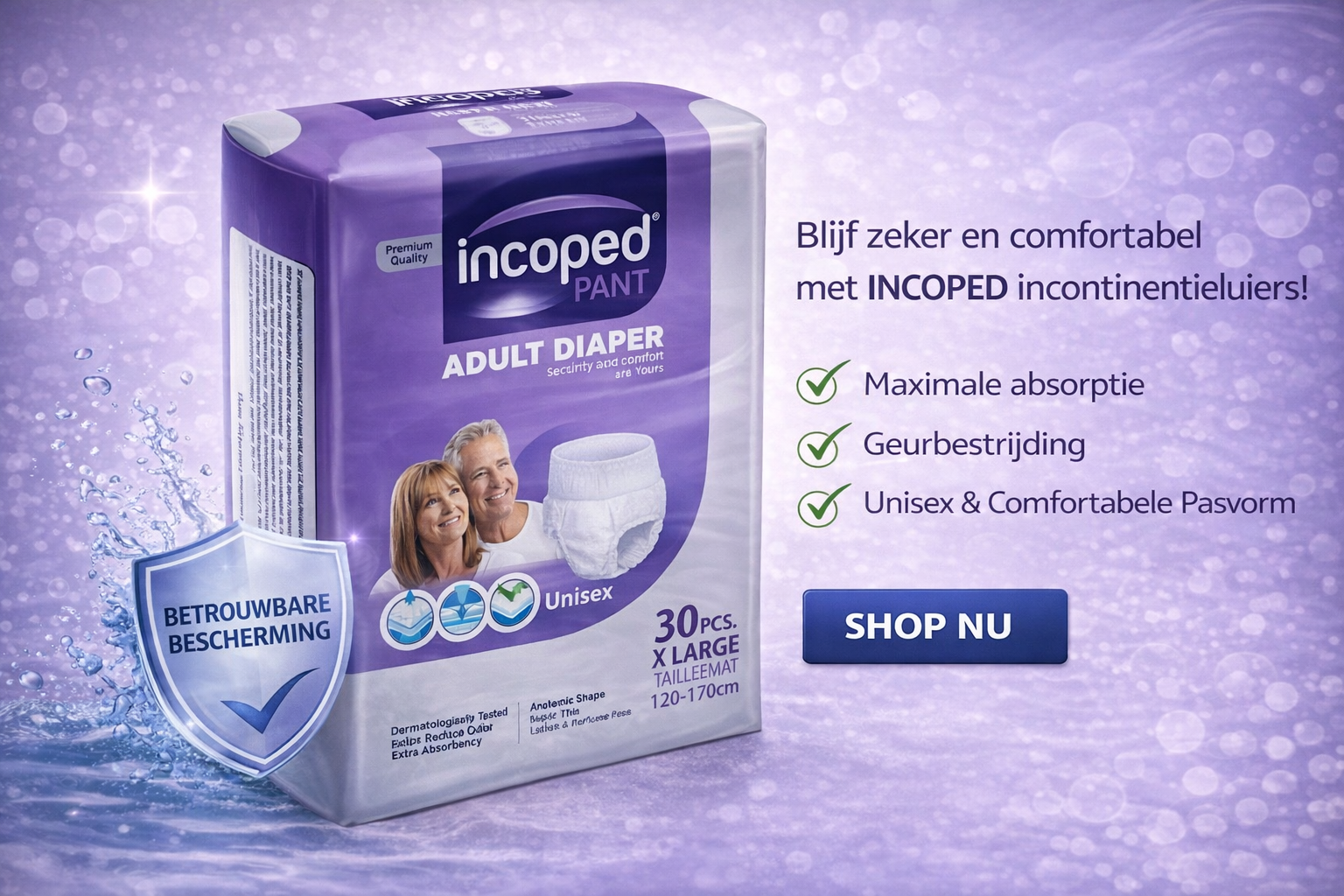 Incoped Pants XLarge Incontinentiebroekjes – Unisex & Discreet Betrouwbare bescherming, de hele dag door. Incoped Pants XLarge incontinentiebroekjes zijn speciaal ontworpen voor mannen en vrouwen die behoefte hebben aan comfort, discretie en maximale zekerheid bij urine- en fecale incontinentie. De broekjes zijn voorzien van een super-absorberende kern met gelijkmatige vochtverdeling, waardoor de huid droog en comfortabel blijft. Het ademende en huidvriendelijke materiaal helpt huidirritaties te voorkomen en zorgt voor een prettig draaggevoel, zelfs bij langdurig gebruik. Dankzij de geïntegreerde Odour Neutralizer worden onaangename geuren effectief geneutraliseerd. Ammoniakgeuren worden tot wel 12 uur verminderd, zodat u zich de hele dag fris en zelfverzekerd voelt – thuis én buitenshuis. De elastische pasvorm sluit goed aan op het lichaam en biedt optimale bewegingsvrijheid, terwijl het superdunne ontwerp zorgt voor maximale discretie onder kleding. Vrij van lotion en parfum, en dermatologisch getest, waardoor de broekjes ook geschikt zijn voor de gevoelige huid.